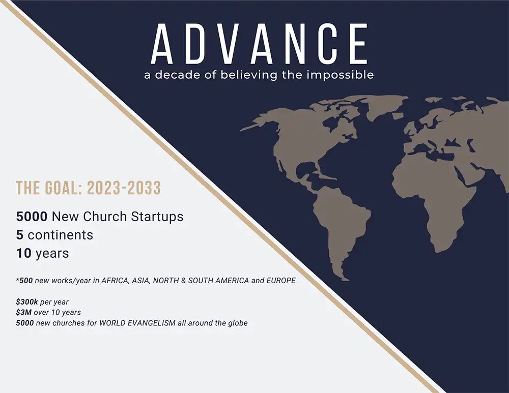 By faith we are asking God to double our efforts again in 2023 by financing 500 new church startups. Over the next decade, our goal is to finance 5,000 new churches. It took faith to get where we are and it will take INCREASED faith to go above and beyond our expectations.